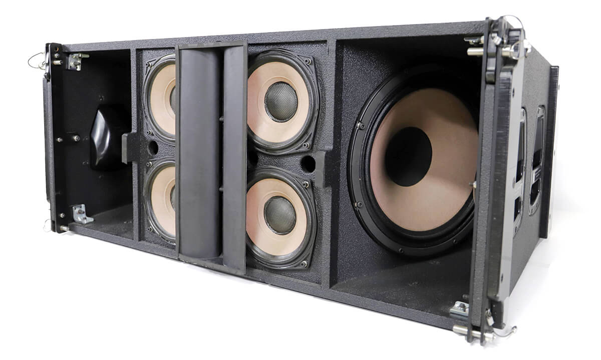 loa line array kép 14 inch ĐÁP ỨNG TẦN SỐ: 55 Hz - 16 kHz (±3 dB), 45 Hz - 19 kHz (-10 dB) Độ Phủ Danh Định: (-6dB)80° Ngang, có thể điều chỉnh Trở Kháng Danh Định: HF/MF/LF(T)/LF(P): 24/16/12/12 ohms Kích Thước : (CxRxS)449 x 1030 x 565 mm Trọng lượng: 77 kg Đầu Nối :2x8 WP8, 2x8 Neutrik NL8 Vật Liệu: Gỗ ép bạch dương nhiều lớp 15mm, 18mm Hoàn Thiện: Sơn polyurea đen Lưới: Lưới thép epoxy đen với vải lọc âm Lắp Đặt: Phương pháp treo ba điểm, có thể điều chỉnh 0-8°