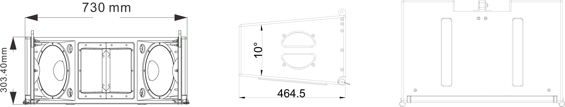 Củ loa: LF 2x 10” loa trầm (cuộn dây âm 75mm), HF 1x 3” củ loa nén.